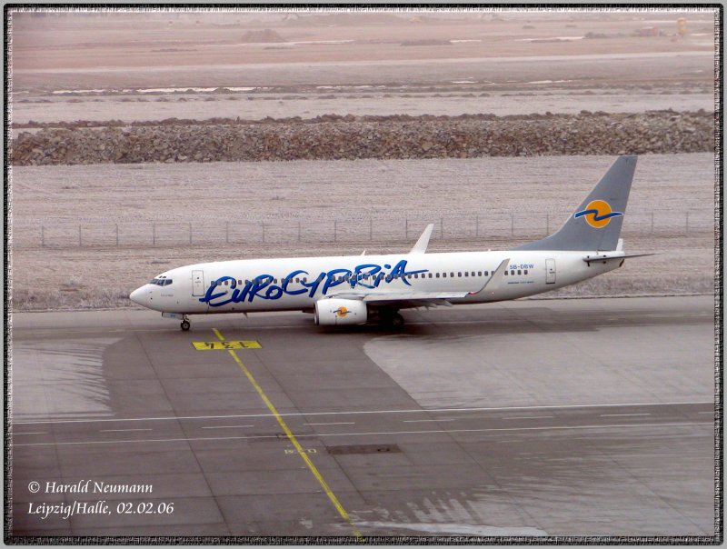 Boeing 737-800 der Eurocypria an einem kalten 02.02.06 auf dem Vorfeld des Flughafens Leipzig/Halle.