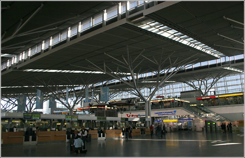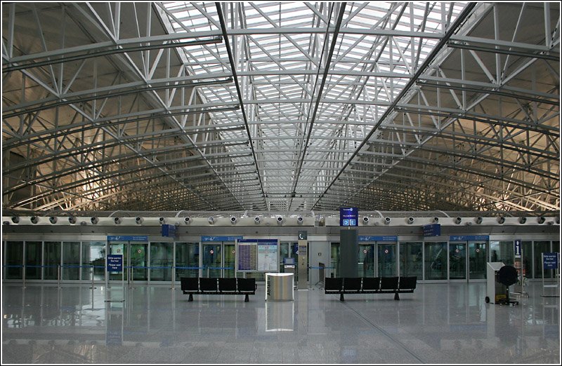 Das 2004 eröffnete neu Terminal 3 wurde ebenfalls von Meinhard von Gerkan vom Hamburger Architekturbüro gmp entworfen. Diese Büro ist auch für das Hamburger Terminal verantwortlich. Auch hier kamen wieder die Baumstützen zu Anwendung, allerdings ist die Detailierung des Bauwerks ein ganz andere. 26.10.2006 (Matthias)