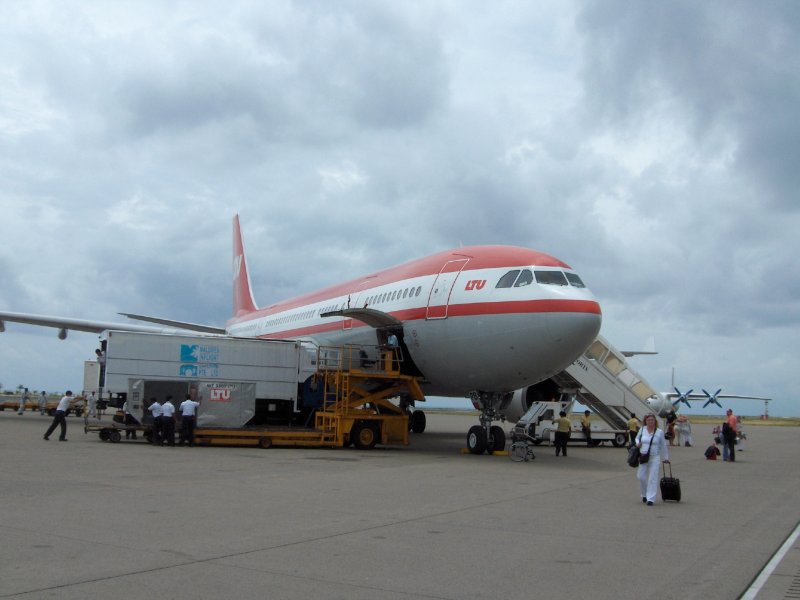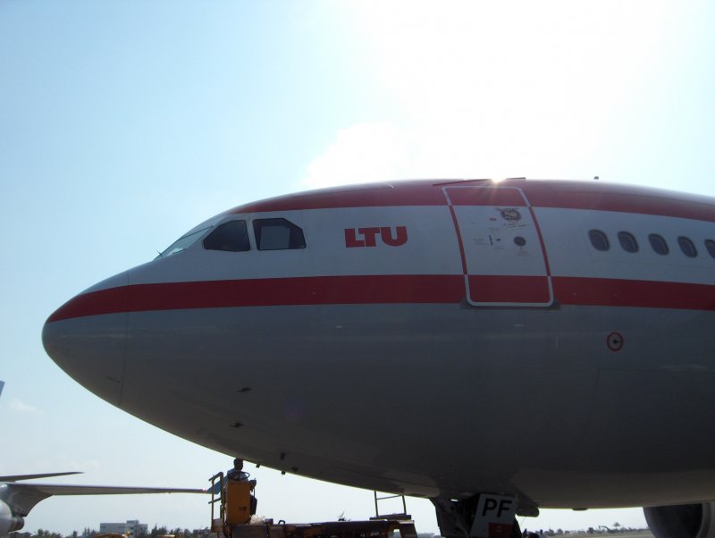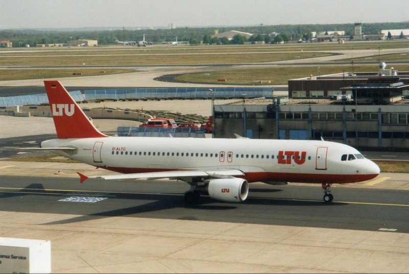 Ein Airbus A320 der deutschen Fluggesellschaft LTU ist vor wenigen Minuten in Frankfurt gelandet (gescanntes Bild)