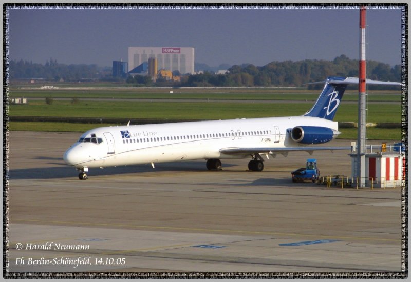 Hier ist ein MD90 der Blue Line Fluggesellschaft auf dem Flughafen Berlin-Schönefeld gelandet. 14.10.05