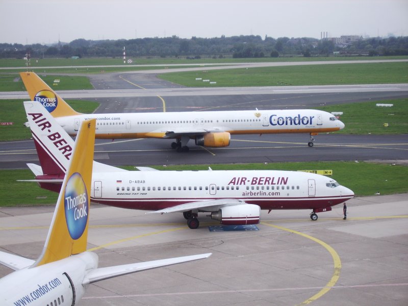 Boeing 757-300( Condor) und Boeing 737-700 ( Air Berlin) bereit zum Rollen Richtung Startbahn