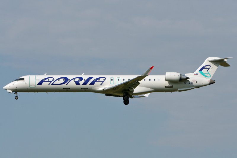 Adria Airways Canadair Regional Jet CRJ900 , die neueste Maschine S5-AAL ,im Landeanflug auf Rwy 14 (Erstbesuch in ZRH) 20.Juni 2007