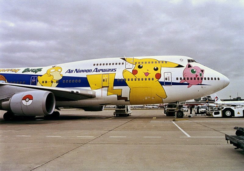 All Nippon Airways, JA8962, Boeing 747-481. Ob die Berliner Philharmoniker an Bord schon an ihre Konzerte in Japan denken ? Oder eher an die lustigen Pokemonfiguren auf ihrem Jumbo ? Tegel 90er Jahre.