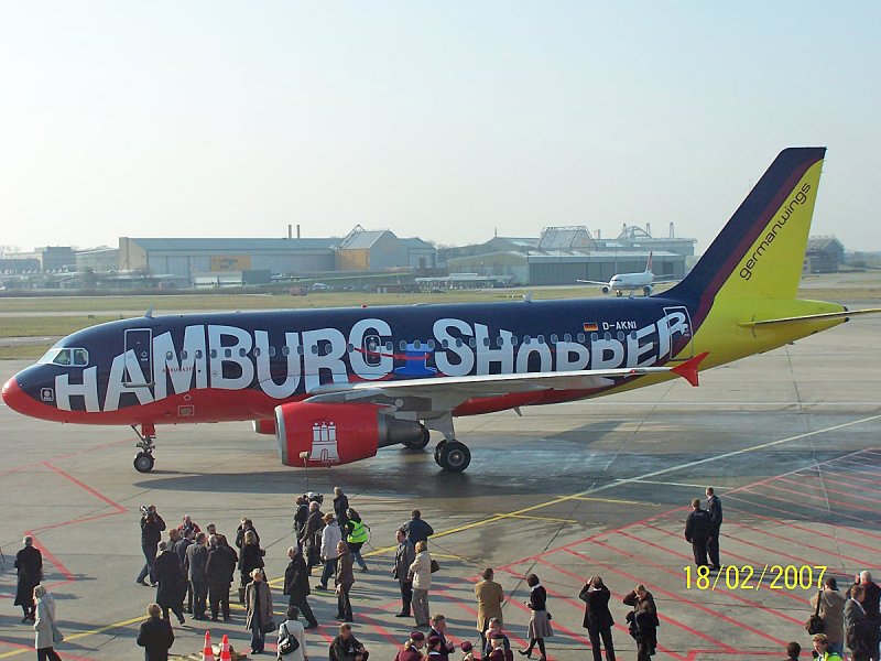Am 18.02 2007 wurde der "Hamburg Shopper" eine A 319 der "germanwings" getauft. Ich hatte eine Einladung bekommen, und war dabei. Auf dem Vorfeld kam man auch dichter als sonst an die ganz "Großen" rann.