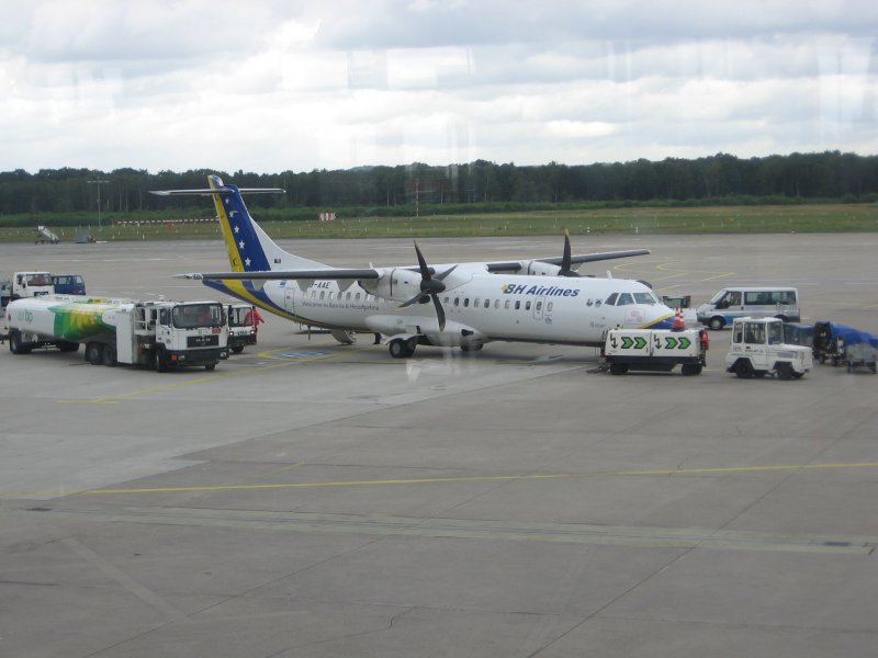 Am 26.06.2007 steht eine ATR 72 der B&H Airlines auf dem Rollfeld des Flughafens Köln/Bonn.
