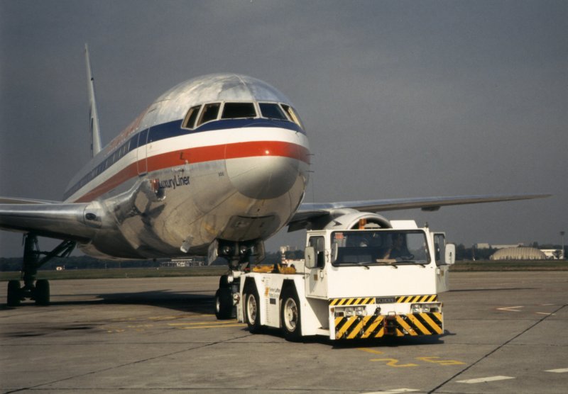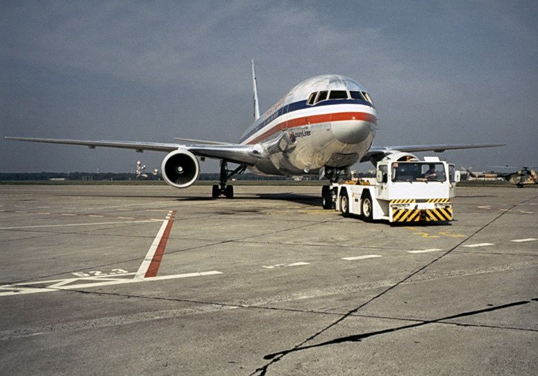 America Airlines, Boeing 767-223/ER. Der LuxuryLiner beim push back auf dem Vorfeld. Tegel 90er Jahre.