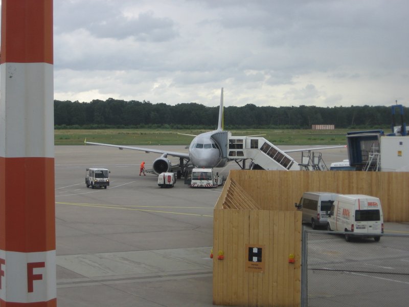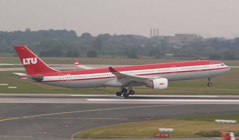 Die D-AERS bei der Landung auf der 05R. Der Flieger fliegt noch in der alten LTU Lackierung umher. Das Foto stammt vom 03.06.2007