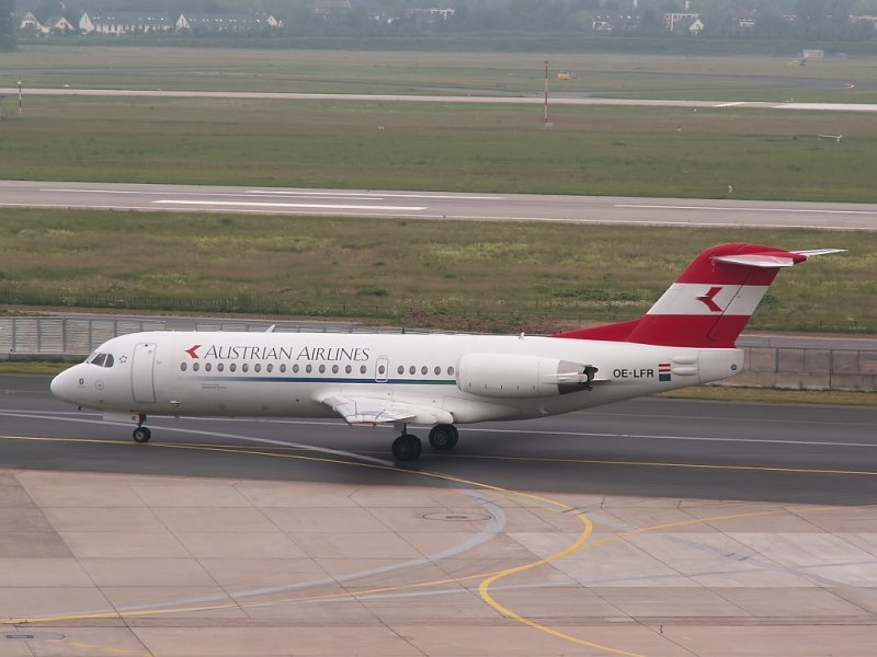 Die OE-LFR ist eine der wenigen Fokker 70 der Austrian, welche noch in den alten Farben herumfliegt. Das Foto stammt vom 03.06.2007