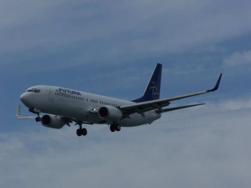 Eine Boeing 737 der Futura kurz vor dem Aufsetzen auf Lanzarote am 03.06.2007.