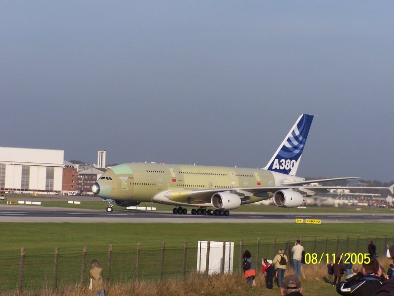 Erste Landung eines A380 in Deutschland bei AIRBUS in Hamburg.
