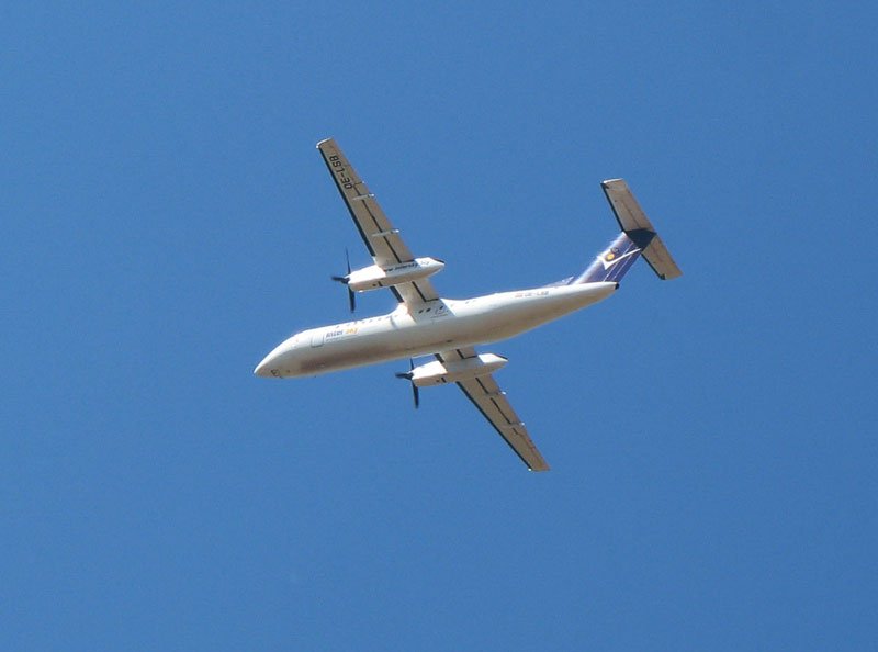 Die D-ABBN beim Start in den grauen Himmel über Düsseldorf. Das Foto stammt vom 31.05.2007