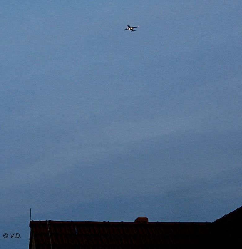 Nur ein Experiment am Abend aus dem Dachfenster: dass da ein germanwings Airbus A319 kommt, sei dazugesagt. - 01.06.2007