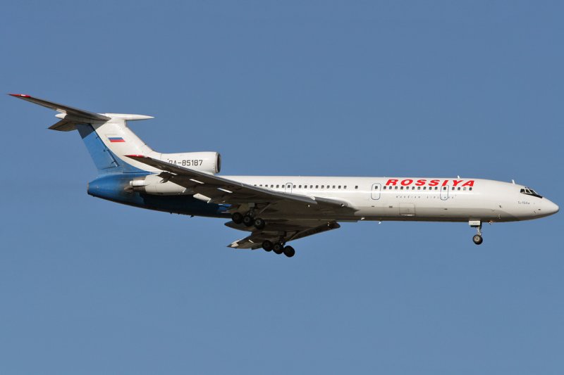 Rossiya, Tupolev TU-154M , auf dem sonntäglichen Charterflug aus St.Petersburg, im Endanflug auf Rwy 34. 24.6.2007