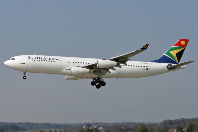 South African Airways Airbus A340-211, bei einer der letzten Landungen auf Rwy 14, bevor die Liniendienste nach Zürich eingestellt wurden