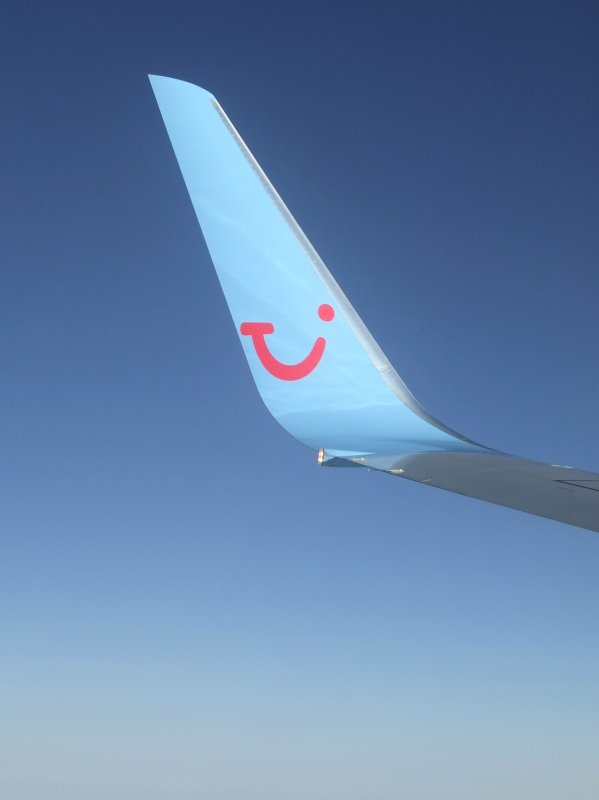 Die hochgezogenen Winglets der neusten Boeing 737-800 Serie der Hapagfly (TUI) am 25.09.2008.