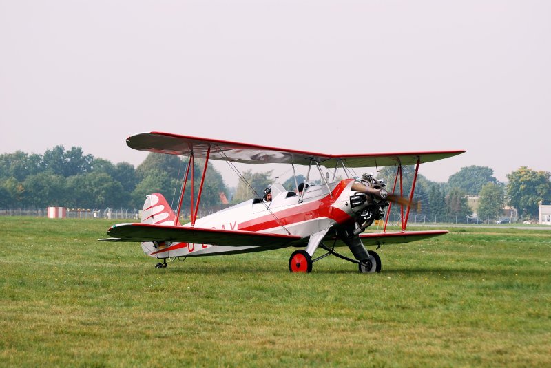 Diese Focke Wulf FW-44 Stieglitz macht sich auf den Weg zum Start zu einem Rundflug bei den Flugtagen Lübeck am 27.09.08 auf dem Flughafen Lübeck Blankensee.