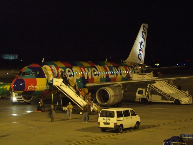 Ein Airbus A 319 der Germanwings mit ParkInn Werbung nach der Landung in Berlin-Schönefeld am 25.09.2008.