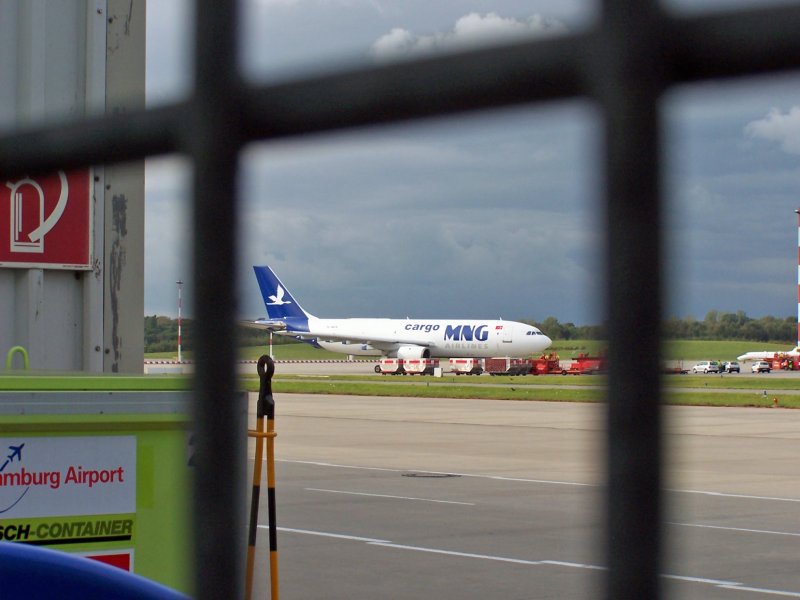 Ein Spotter sollte immer eine Leiter bei sich haben :-) Airbus A 300B4-203F. Cargo MNG in Hamburg am 29.09.2008