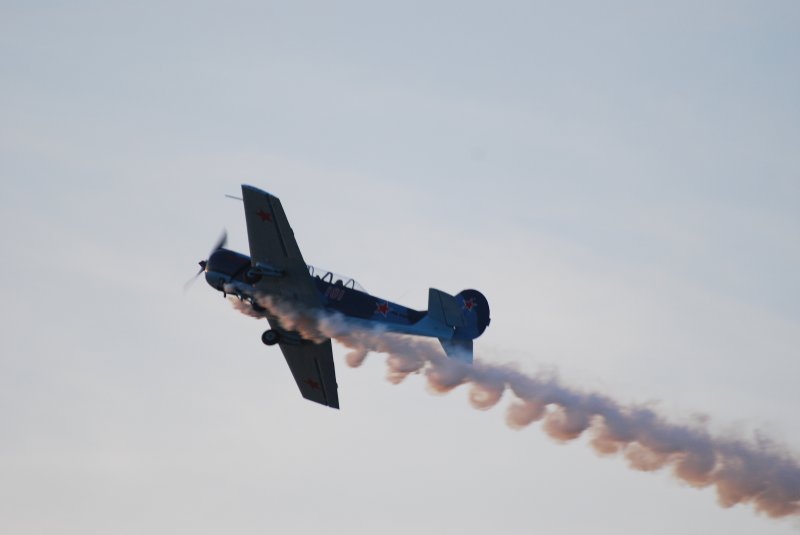 Showflug mit Smoke ein Yak-52 aufgenommen bei den Flugtagen Lübeck auf den Flughafen Lübeck Blankensee am 27.09.08