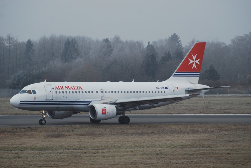 Der Airbus A319 9H-AEG der Air Malta beim verlassen der Runway in Hamburg Fuhlsbüttel am 28.01.09