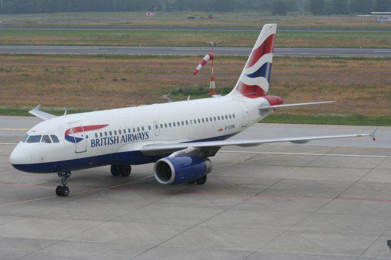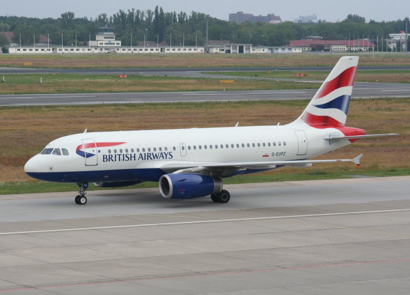 British Airways A 319-131 G-EUPN bei der Ankunft auf dem Flughafen Berlin-Tegel am 28.06.2009
