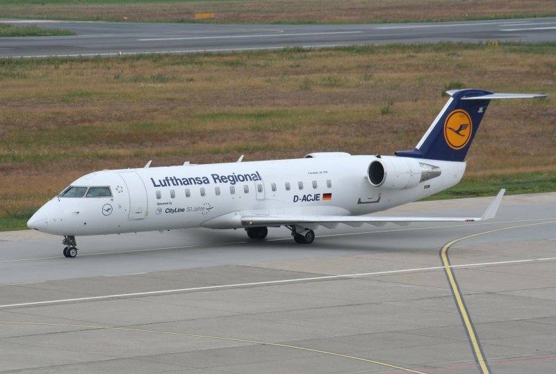 Lufthansa-Regional(City-Line) Canadair Regjet CRJ200LR D-ACJE mit Sticker "50 Jahre City-Line" am 28.06.2009 auf dem Flughafen Berlin-Tegel