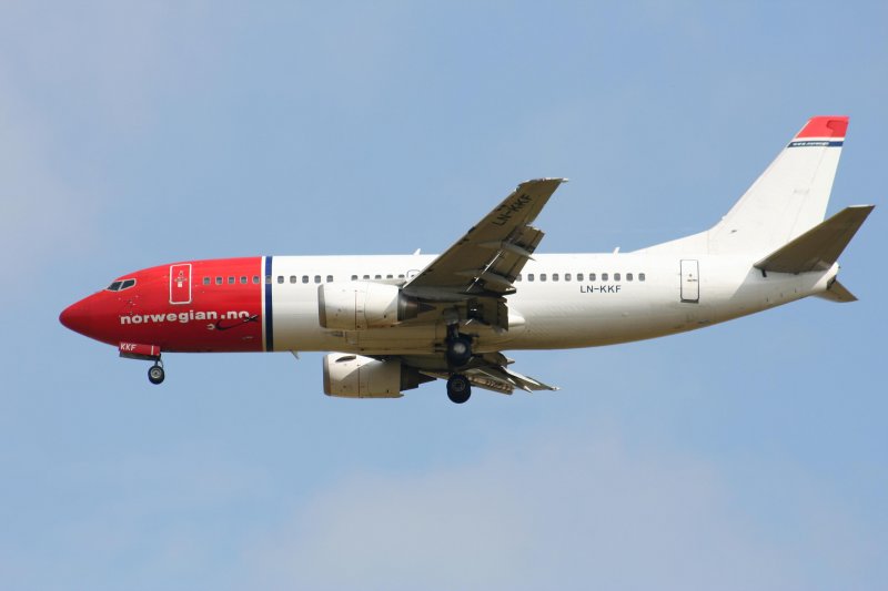 Norwegian Air Shuttle B 737-3K2 LN-KKF im Landeanflug auf den Flughafen Berlin-Schönefeld am 05.07.2009
