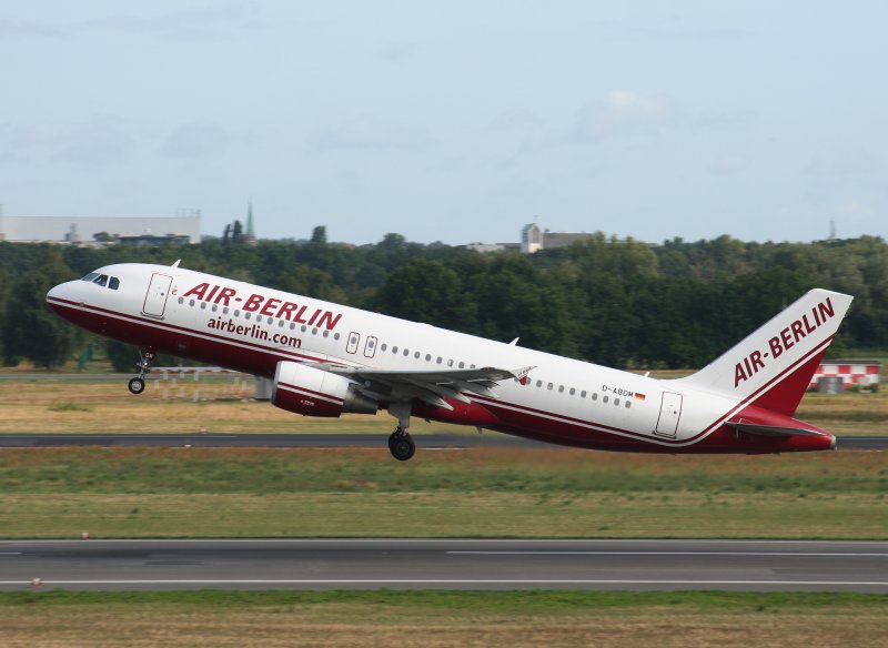 Air Berlin A 320-214 D-ABDM beim Start in Berlin-Tegel am 26.07.2009
