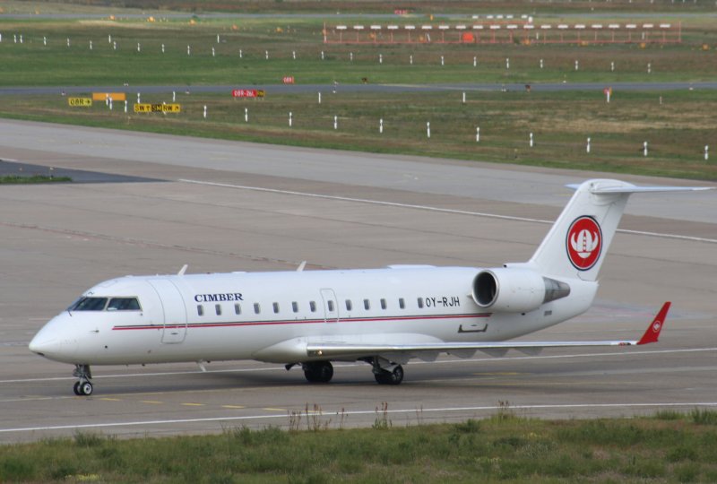 Cimber Air Canadair Regjet CRJ100 OY-RJH bei der Ankunft auf dem Flughafen Berlin-Tegel am 26.07.2009