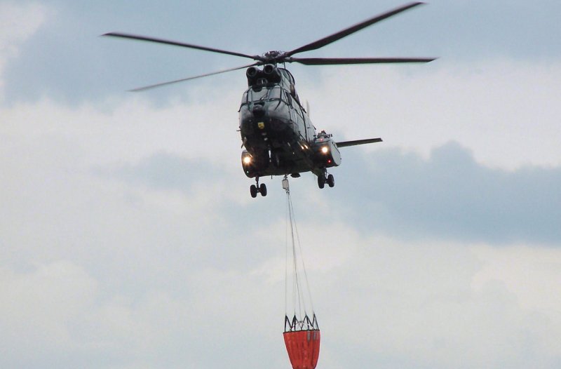 Ein Puma des BGS (Bundespolizei) mit Wassersack am Haken, anläßlich einer Vorführung am 21.05.2005 in Bonn-Hangelar.
