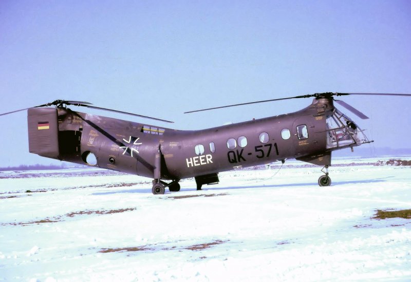Vertol H 21 C Heeresflieger auf dem Flugplatz Itzehoe-Hungriger Wolf, Winter 1964.