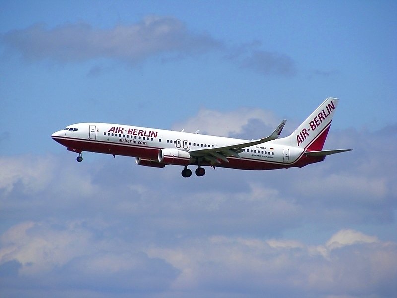 D-ABAQ, eine 737-800 der Air Berlin, im Anflug auf Dresden-Klotsche (7.6.2009).
