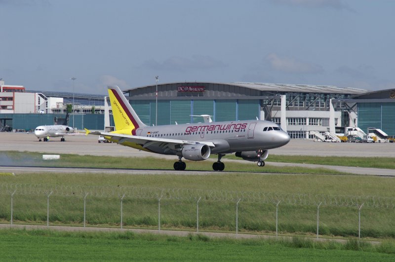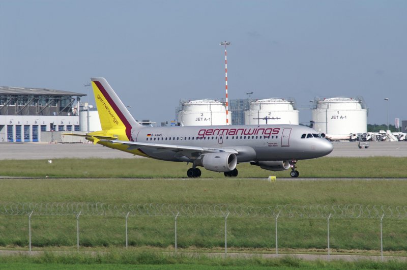 Ein Airbus A-319-112 der Germanwings mit der Kennung D-AKNT aufgenommen am 30.05.09 am Stuttgarter Flughafen.