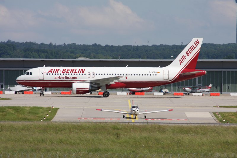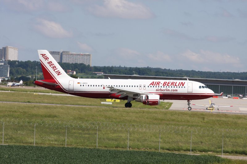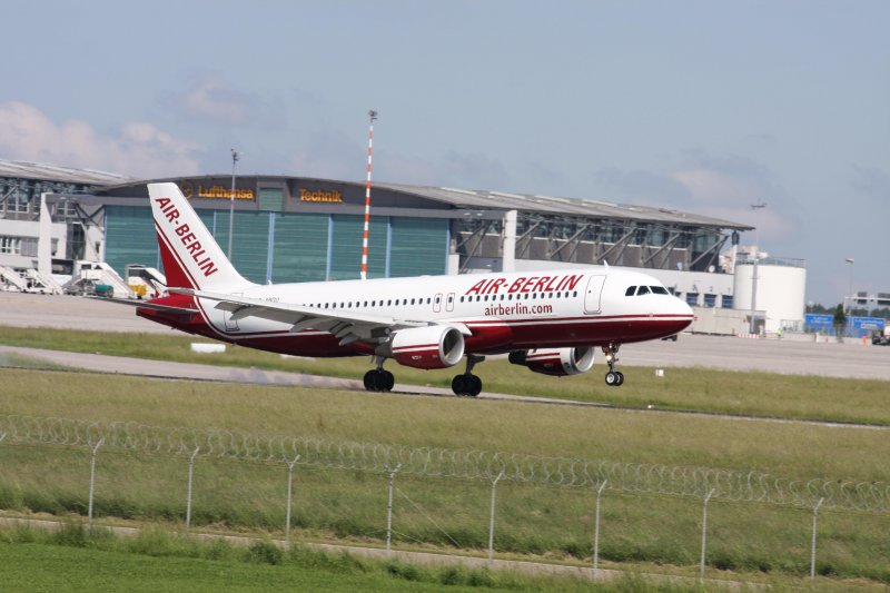 Ein Airbus A 320 der AIR BERLIN mit der Kennung D-ABDO aufgenommen am 30.05.09 am Flughafen Stuttgart.