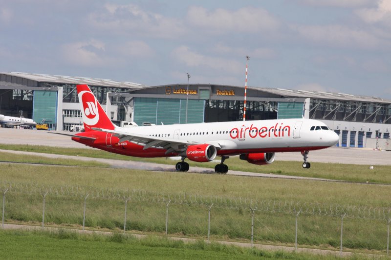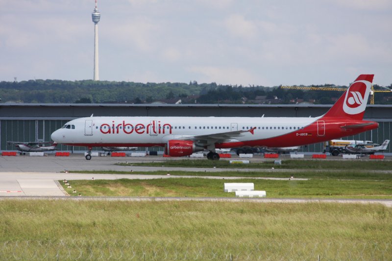 Ein Airbus A 321 der AIR BERLIN mit der Kennung D-ABCB aufgenommen am 30.05.09 am Flughafen Stuttgart.