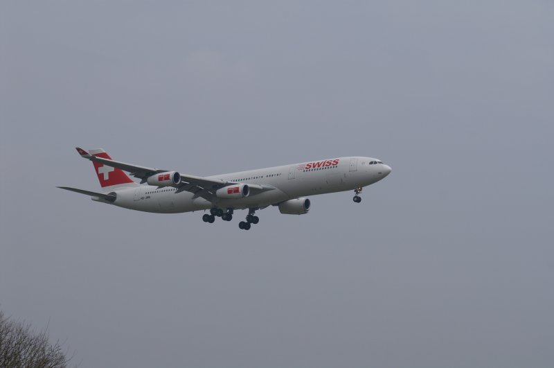 Ein Airbus A-340-313X der Swiss International Air Lines mit der Kennung HB-JMB aufgenommen am 04.04.09 am Züricher Flughafen.