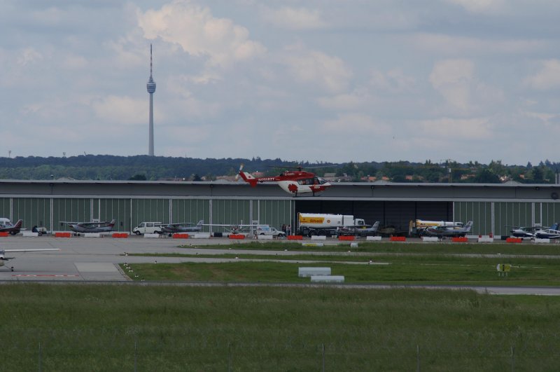 Ein Rettungshubschrauber der Deutschen Rettungsflugwacht DRF mit der Kennung D-HAWK Aufgenommen am 30.05.09 am Stuttgarter Flughafen.