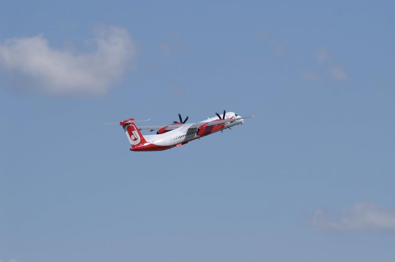 Eine Air Berlin DHC-8 mit der Kennung D-ABQF beim Start auf dem Stuttgarter Flughafen am 30.05.09.