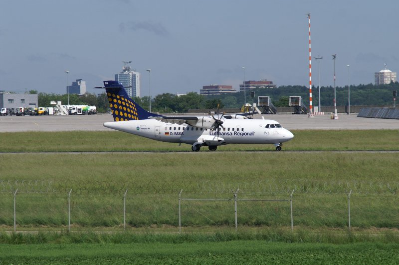 Eine ATR AT45 der Contact Air (Lufthansa Regional) mit der Kennung D-BSSS aufgenommen am 30.05.09 am Stuttgarter Flughafen.