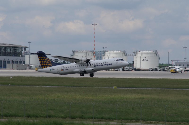 Eine ATR ATR 72-212A der Contact Air (Lufthansa Regional) mit der Kennung D-ANFG aufgenommen am 30.05.09 am Stuttgarter Flughafen.