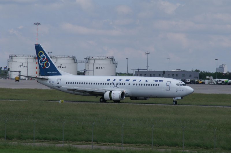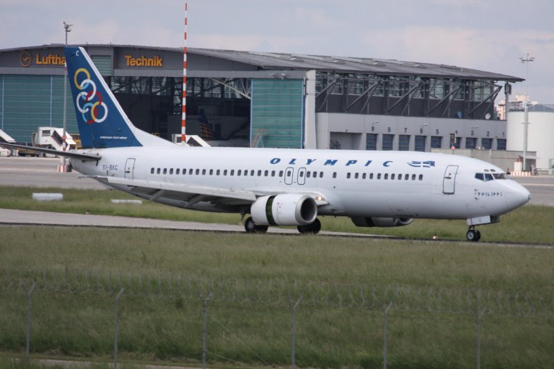 Eine Boeing 737-484 der Olympic Airlines mit der Kennung SX-BKC aufgenommen am 30.05.09 am Stuttgarter Flughafen.