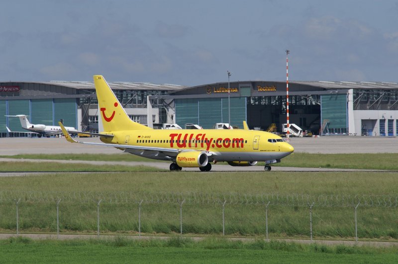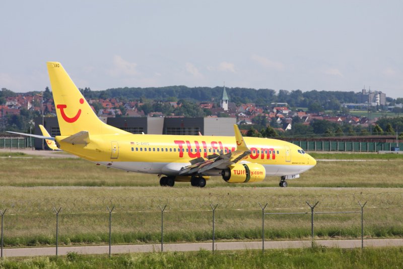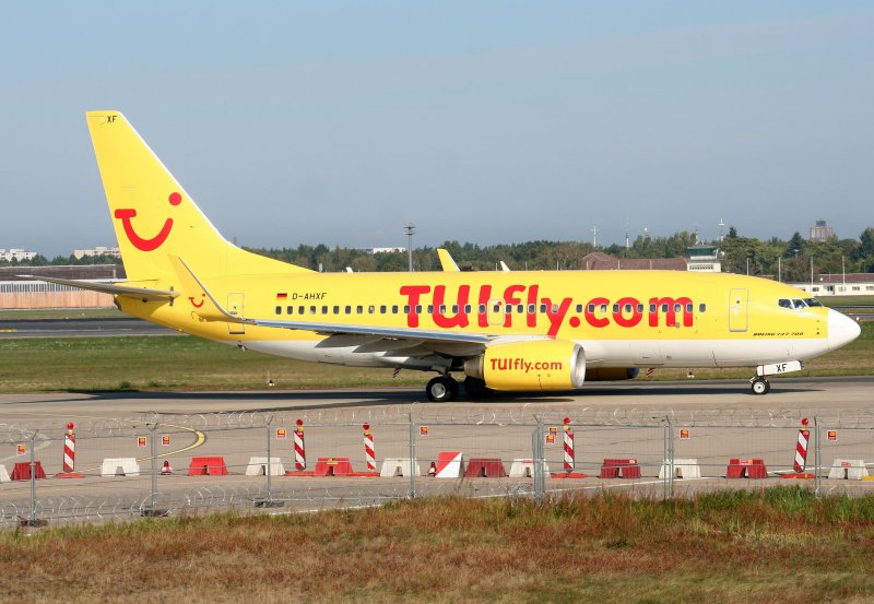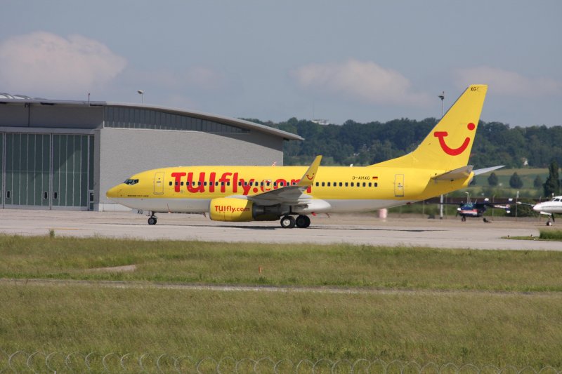 Eine Boeing 737-7K5 von TUIfly mit der Kennung D-AHXG aufgenommen am 30.05.09 am Stuttgarter Flughafen.
