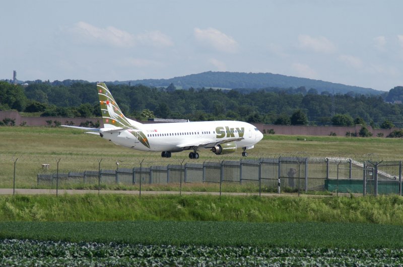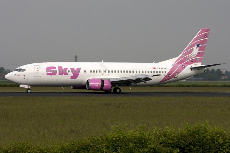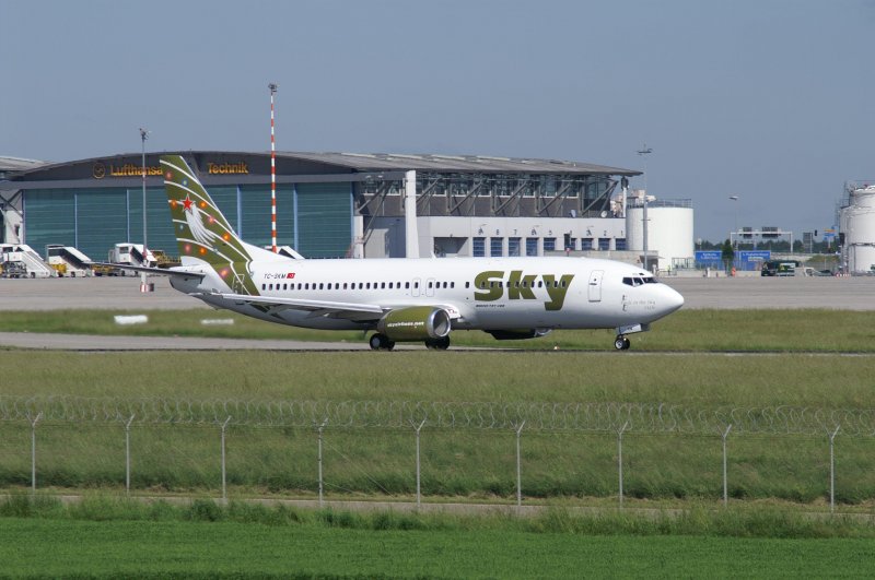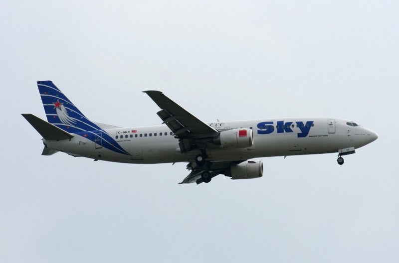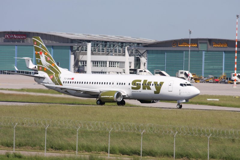 Eine Boeing B734 der Sky Airlines mit der Kennung TC-SKM aufgenommen am 30.05.09 am Stuttgarter Flughafen.
