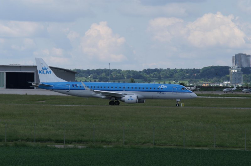 Eine EMBRAER E190 der KLM Cityhopper mit der Kennung PH-EZB aufgenommen am 30.05.09 am Stuttgarter Flughafen.