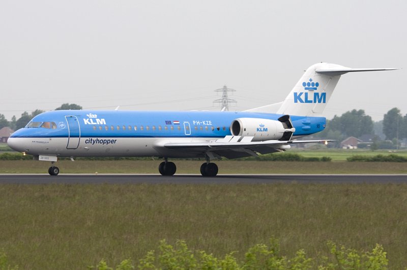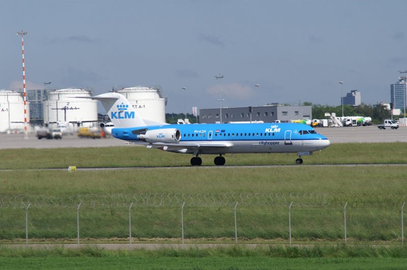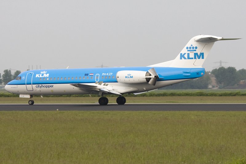Eine Fokker 70 (F28-0070) der KLM CityHopper mit der Kennung PH-KZC aufgenommen am 04.04.09 am Züricher Flughafen.