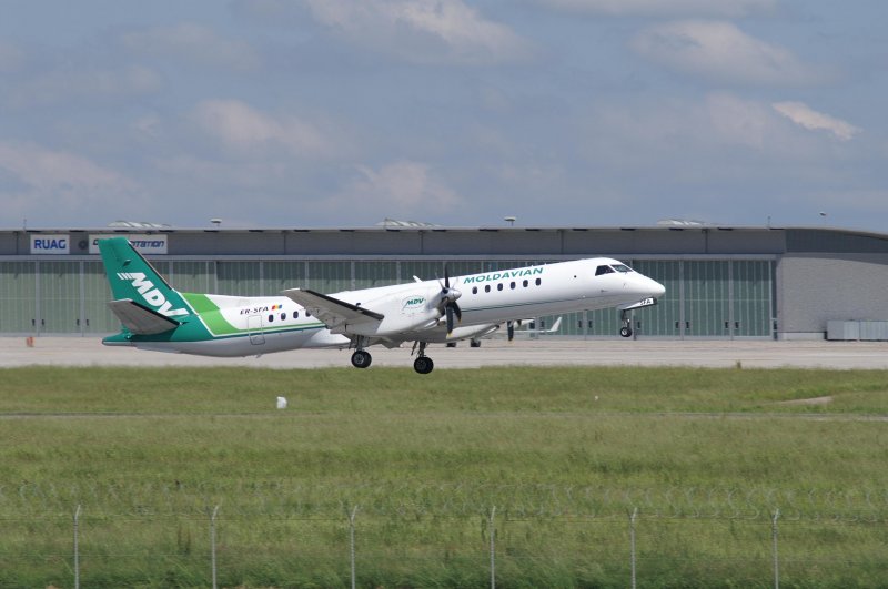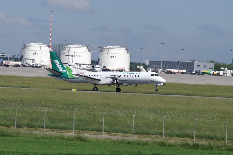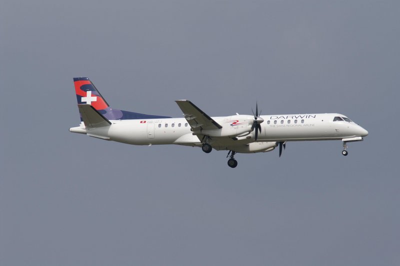 Eine Saab-Scania 2000 der Darwin Airline mit der Kennung HB-IZJ aufgenommen am 04.04.09 am Züricher Flughafen.