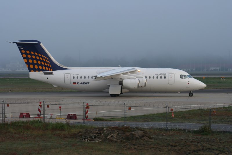 Eurowings BAe 146-200 D-AEWF im morgentlichen Nebel am 27.09.2008 auf dem Flughafen Berlin-Tegel