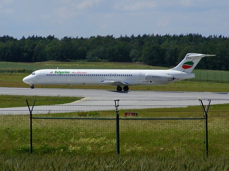 MD-82 LZ-LDK der Bulgarian Air Charter steht startklar auf der Runway in Dresden. Ziel von Flug BUC7106 ist Burgas. (7.6.2009)