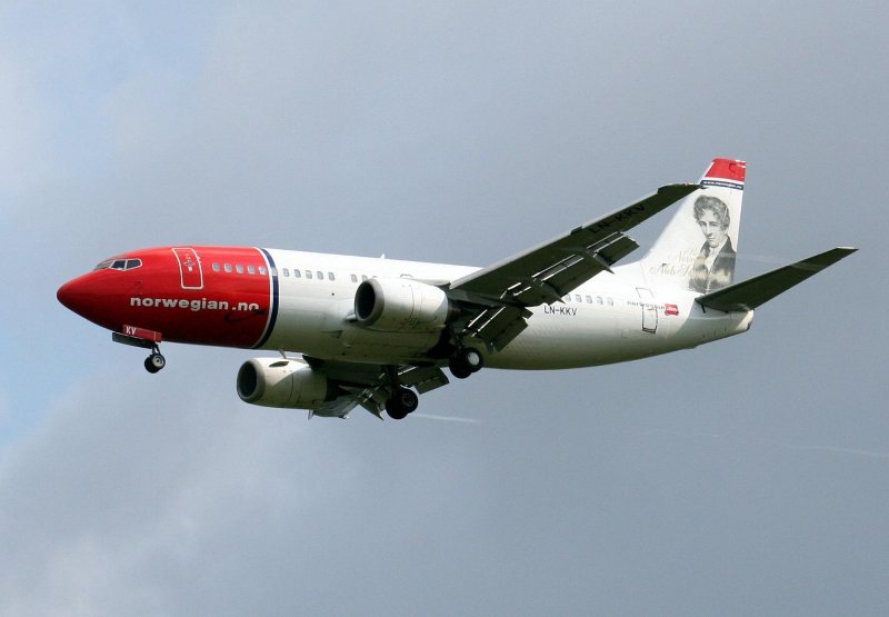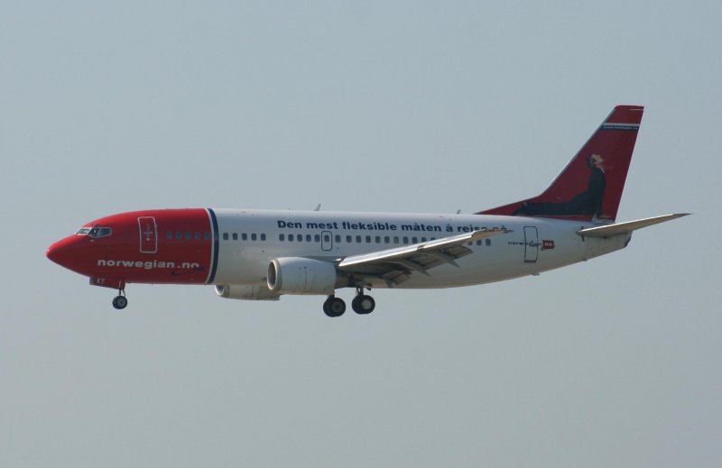 Norwegian Air Shuttle B 737-3L9 LN-KKT am 15.07.2007 im Landeanflug auf den Flughafen Berlin-Schönefeld
