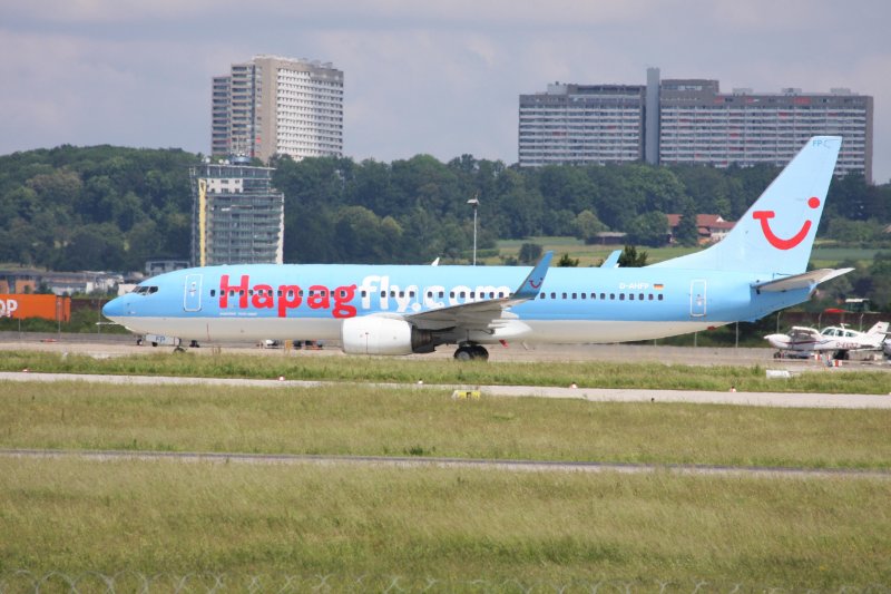 Eine Boeing 737-8K5/W der Hapag Fly mit der Kennung D-AHFP aufgenommen am 30.05.09 am Stuttgarter Flughafen.